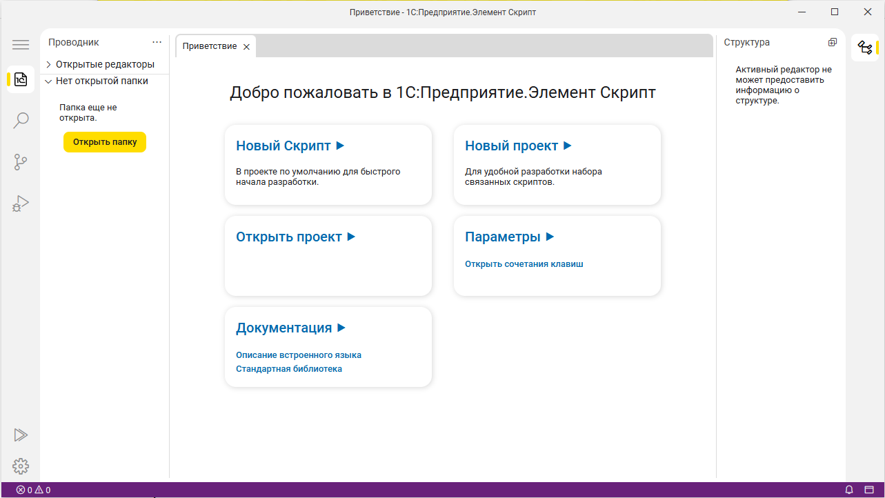 Фирма «1С» выпустила и поддерживает специальную среду разработки и выполнения «1С:Предприятие. Элемент скрипт«. Эта новая среда выполнения для скриптов, написанных на языке 1С:Элемент.